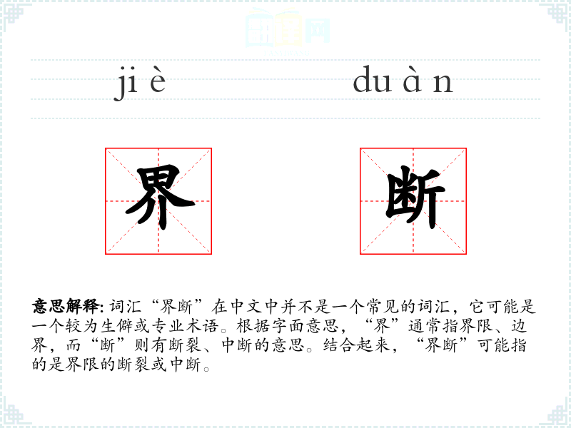 "界断"的意思解释、界断是什么意思由翻译网汉语词典查词提供。