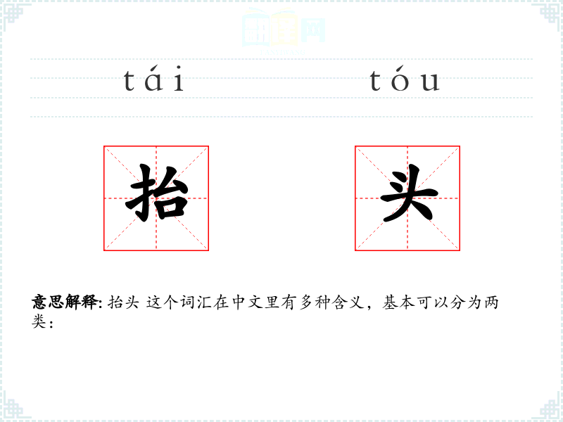 抬头 这个词汇在中文里有多种含义,基本可以分为两类: