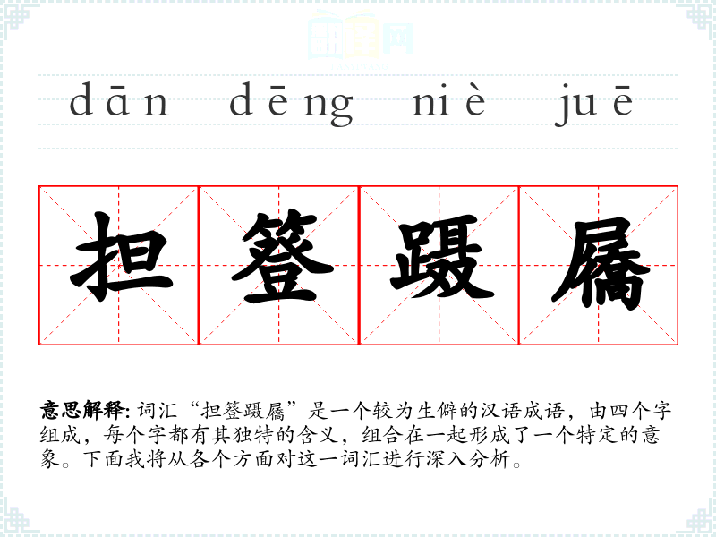 词汇“担簦蹑屩”是一个较为生僻的汉语成语,由四个字组成,每个字都有其独特的含义,组合在一起形成了一个特定的意象。下面我将从各个方面对这一词汇进行深入分析。