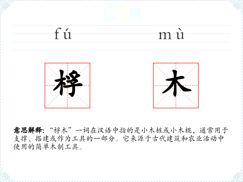 “桴木”一词在汉语中指的是小木桩或小木棍,通常用于支撑、搭建或作为工具的一部分。它来源于古代建筑和农业活动中使用的简单木制工具。