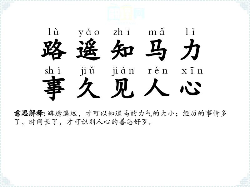 路遥知马力,事久见人心的分字解释