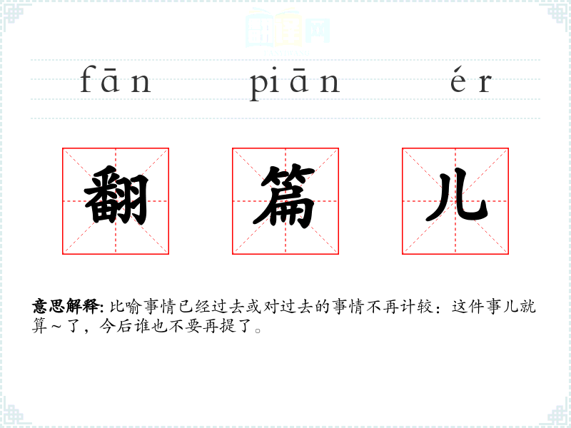 翻篇儿的分字解释