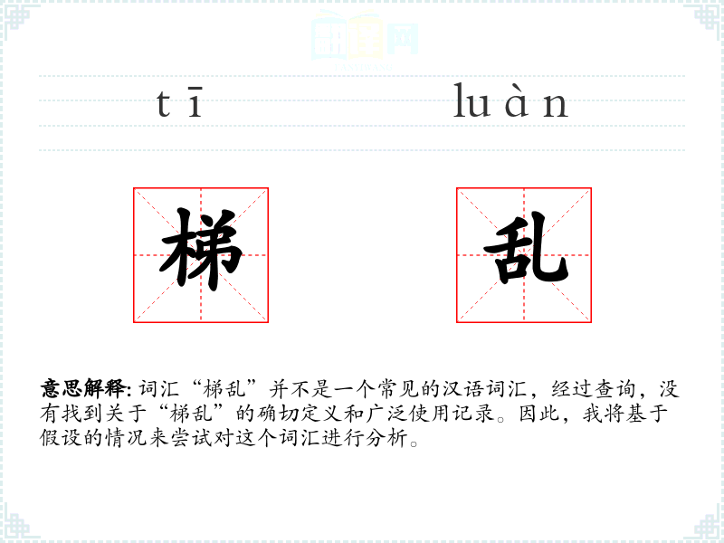"梯乱"的意思解释、梯乱是什么意思由翻译网汉语词典查词提供。