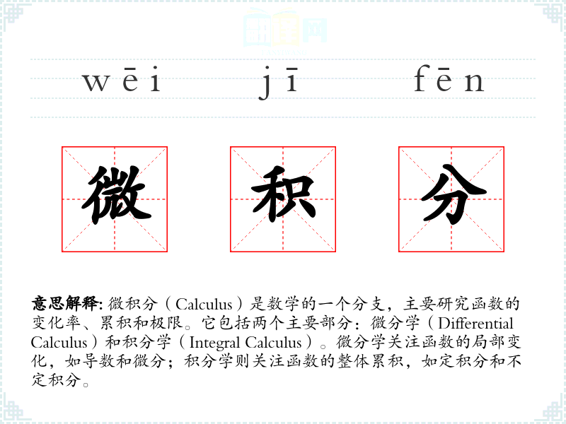 "微积分"的意思解释、微积分是什么意思由翻译网汉语词典查词提供。