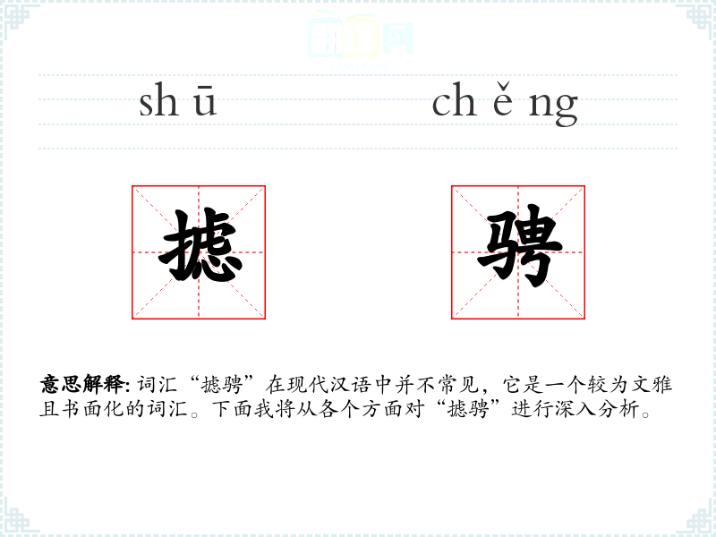 词汇“摅骋”在现代汉语中并不常见,它是一个较为文雅且书面化的词汇。下面我将从各个方面对“摅骋”进行深入分析。