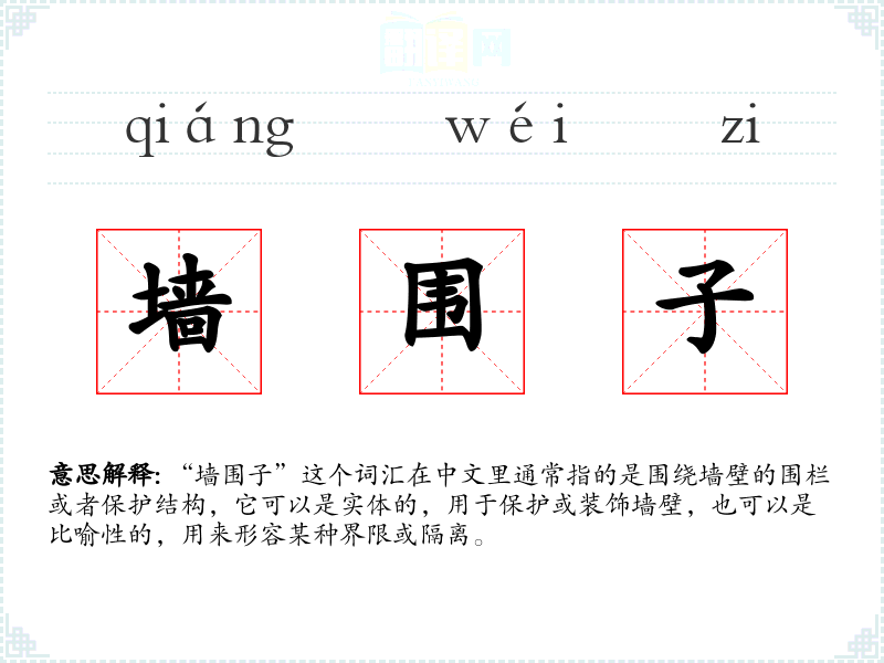 "墙围子"的意思解释、墙围子是什么意思由翻译网汉语词典查词提供。
