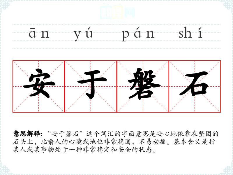 “安于磐石”这个词汇源自**古代的文学作品,磐石象征着坚固和不可动摇,因此“安于磐石”逐渐被用来形容人的心境或事物的稳固状态。随着时间的推移,这个词汇在现代汉语中仍然被广泛使用。