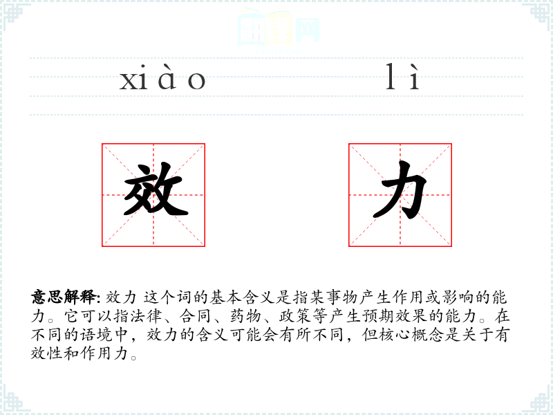 "效力"的意思解释、效力是什么意思由翻译网汉语词典查词提供。