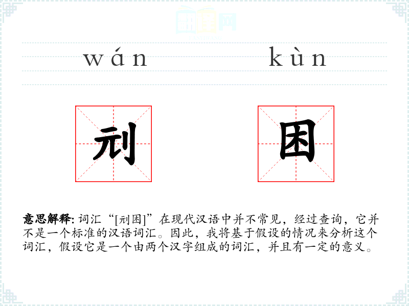 词汇“[刓困]”在现代汉语中并不常见,经过查询,它并不是一个标准的汉语词汇。因此,我将基于假设的情况来分析这个词汇,假设它是一个由两个汉字组成的词汇,并且有一定的意义。