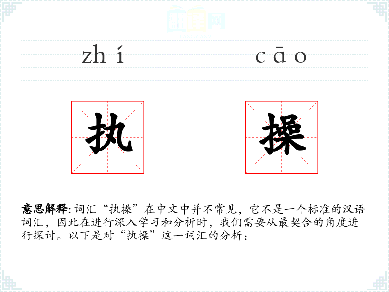 由于“执操”不是一个常用词汇,它可能给人一种专业、严谨或正式的感觉。