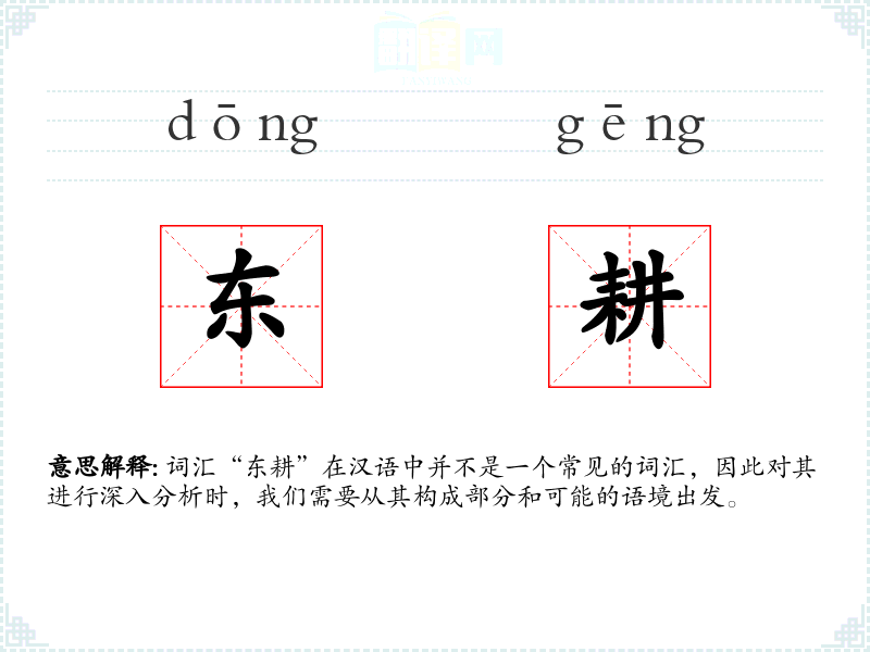 词汇“东耕”在汉语中并不是一个常见的词汇,因此对其进行深入分析时,我们需要从其构成部分和可能的语境出发。