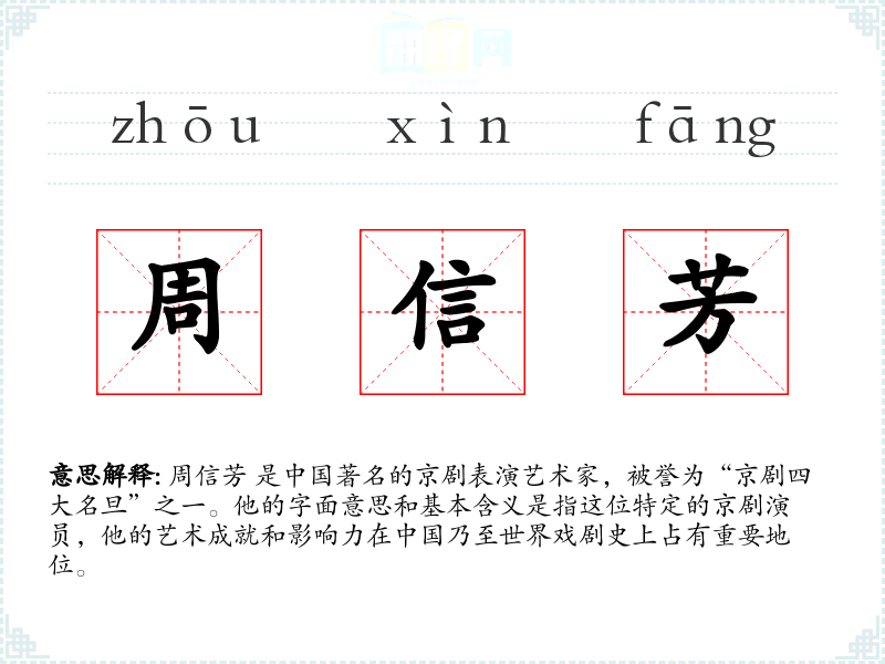 周信芳这个名字本身没有复杂的词源或演变历史,它是一个人名,代表了这位艺术家的身份和成就。