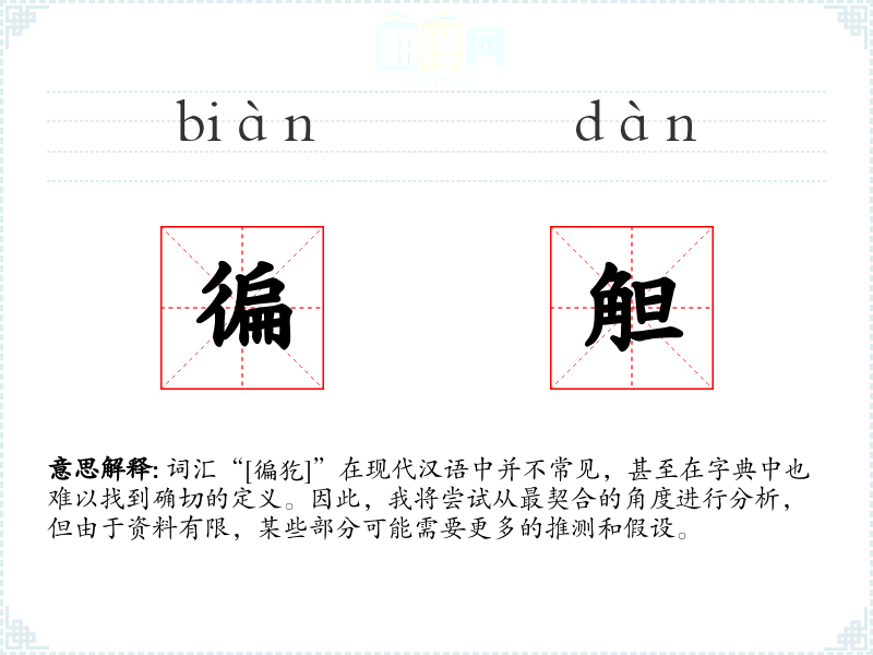 由于“徧犵”不是一个标准的汉语词汇,我们无法提供一个确切的基本定义。它可能是由两个不常见的汉字组合而成,或者是某个方言或古文献中的特定用语。