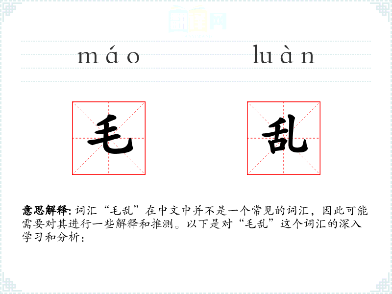 词汇“毛乱”在中文中并不是一个常见的词汇,因此可能需要对其进行一些解释和推测。以下是对“毛乱”这个词汇的深入学习和分析: