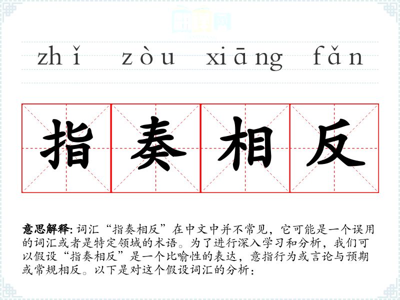 词汇“指奏相反”在中文中并不常见,它可能是一个误用的词汇或者是特定领域的术语。为了进行深入学习和分析,我们可以假设“指奏相反”是一个比喻性的表达,意指行为或言论与预期或常规相反。以下是对这个假设词汇的分析: