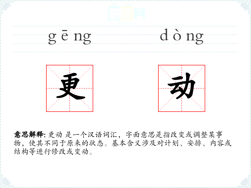“更动”一词源于古代汉语,其中“更”字有改变、替代之意,“动”字表示动作或变化。随着时间的推移,这个词的含义和用法逐渐固定,成为现代汉语中常用的词汇。