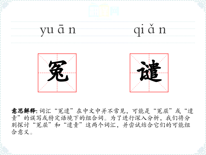 词汇“冤遣”在中文中并不常见,可能是“冤屈”或“遣责”的误写或特定语境下的组合词。为了进行深入分析,我们将分别探讨“冤屈”和“遣责”这两个词汇,并尝试结合它们的可能组合意义。