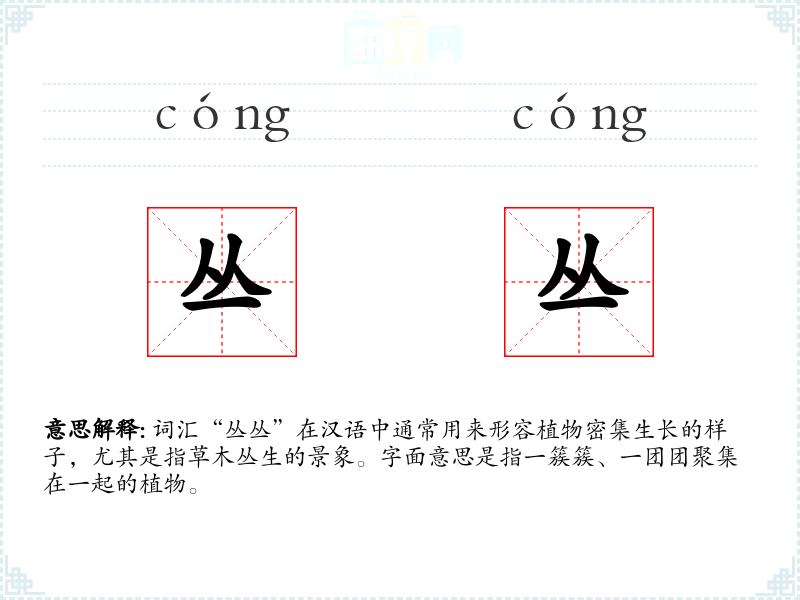 “丛丛”一词在古代汉语中已有使用,其基本含义至今未有大的变化。在古代文献中,如《诗经》中就有“丛丛”一词的出现,用以形容植物的茂密。