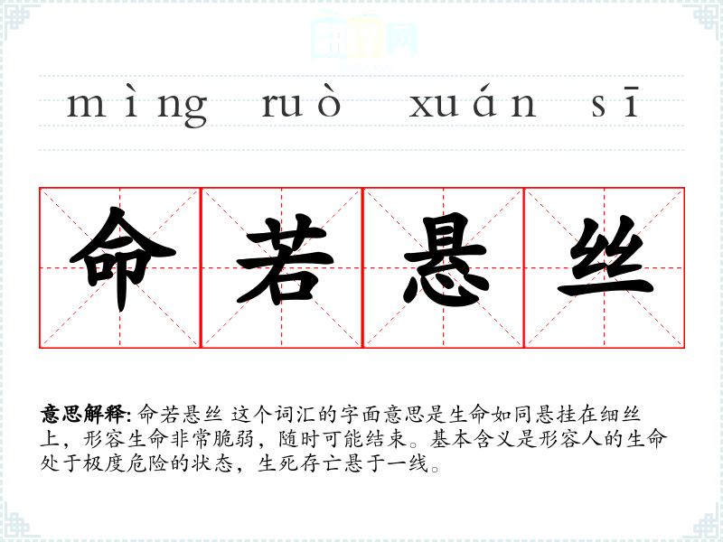 "命若悬丝"的意思解释、命若悬丝是什么意思由翻译网汉语词典查词提供。