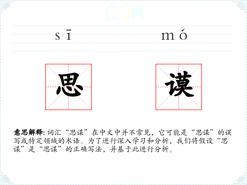 词汇“思谋”在中文中并不常见,它可能是“思谋”的误写或特定领域的术语。为了进行深入学*和分析,我们将假设“思谋”是“思谋”的正确写法,并基于此进行分析。