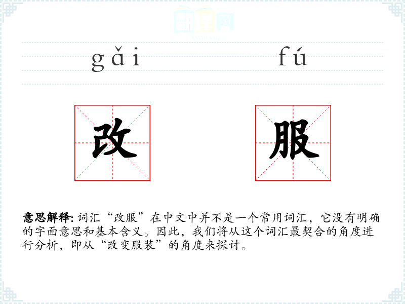 词汇“改服”在中文中并不是一个常用词汇,它没有明确的字面意思和基本含义。因此,我们将从这个词汇最契合的角度进行分析,即从“改变服装”的角度来探讨。