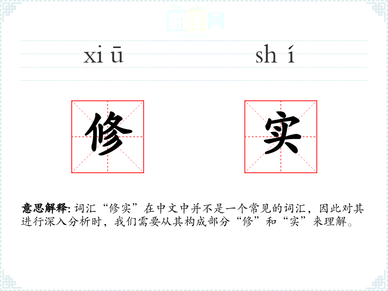 词汇“修实”在中文中并不是一个常见的词汇,因此对其进行深入分析时,我们需要从其构成部分“修”和“实”来理解。
