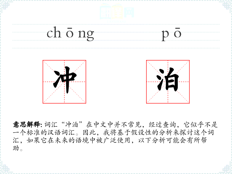 词汇“冲泊”在中文中并不常见,经过查询,它似乎不是一个标准的汉语词汇。因此,我将基于假设性的分析来探讨这个词汇,如果它在未来的语境中被广泛使用,以下分析可能会有所帮助。