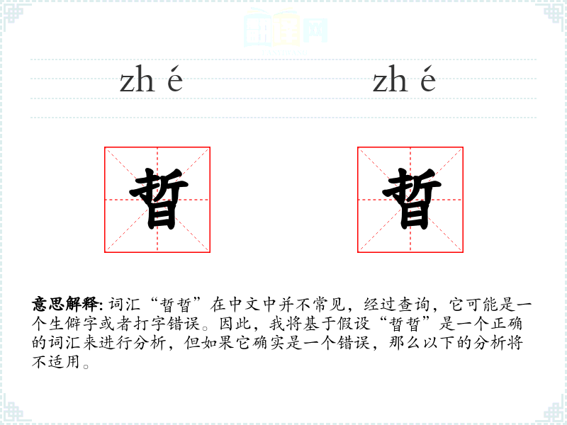 词汇“晢晢”在中文中并不常见,经过查询,它可能是一个生僻字或者打字错误。因此,我将基于假设“晢晢”是一个正确的词汇来进行分析,但如果它确实是一个错误,那么以下的分析将不适用。