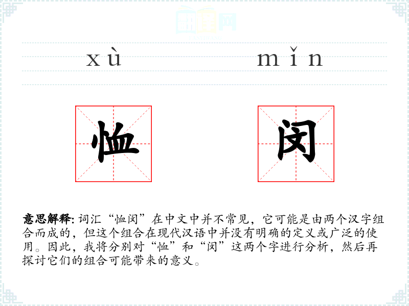 词汇“恤闵”在中文中并不常见,它可能是由两个汉字组合而成的,但这个组合在现代汉语中并没有明确的定义或广泛的使用。因此,我将分别对“恤”和“闵”这两个字进行分析,然后再探讨它们的组合可能带来的意义。