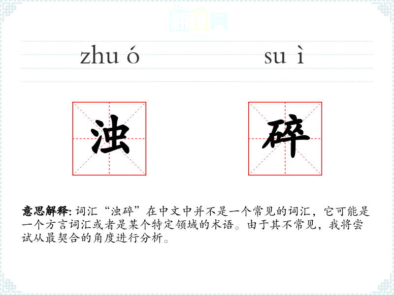 词汇“浊碎”在中文中并不是一个常见的词汇,它可能是一个方言词汇或者是某个特定领域的术语。由于其不常见,我将尝试从最契合的角度进行分析。