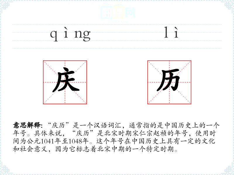 对于历史爱好者或学者来说,“庆历”可能唤起对那个时代的复杂情感,如对那个时代文化成就的赞赏,或是对政治动荡的反思。对于普通读者,这个词汇可能更多地唤起对历史的兴趣和好奇。