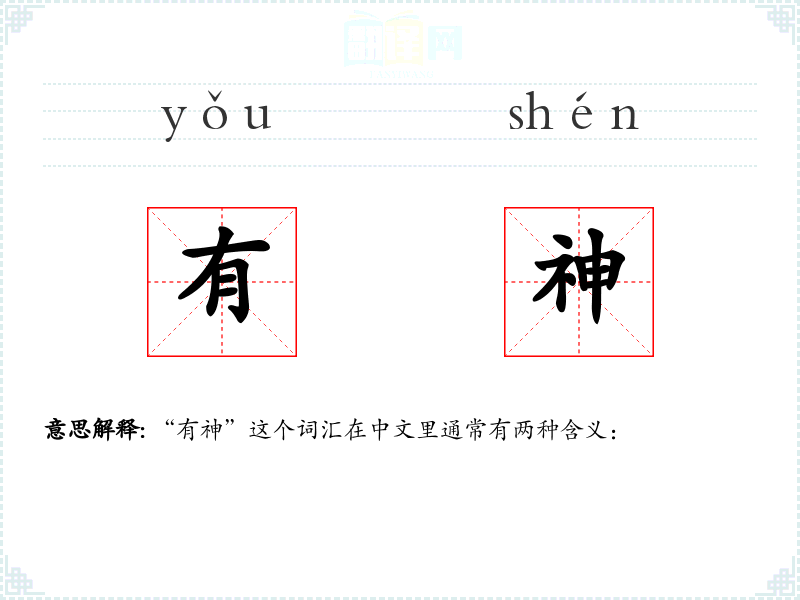 - 文学:在文学作品中,“有神”可能用来形容人物的超凡能力或神秘气质,如“他的眼神有神,仿佛能看透人心。”