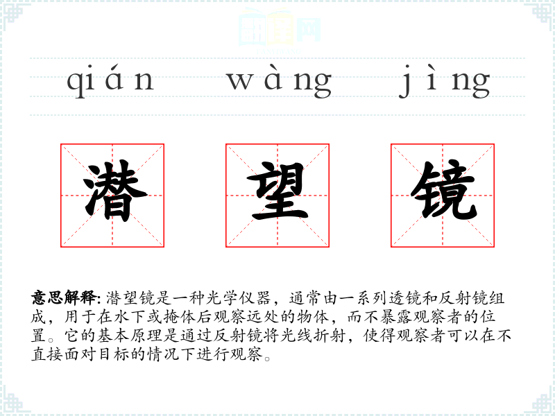 "潜望镜"的意思解释、潜望镜是什么意思由翻译网汉语词典查词提供。