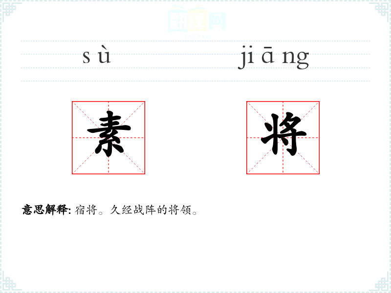 宿将。久经战阵的将领。