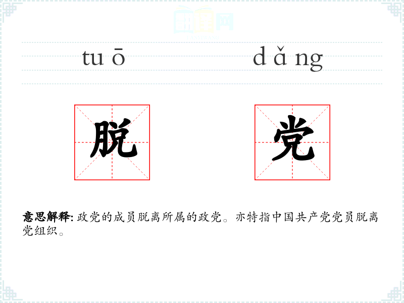 政党的成员脱离所属的政党。亦特指中国共产党党员脱离党组织。