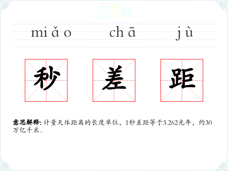 计量天体距离的长度单位,1秒差距等于3.262光年,约30万亿千米。