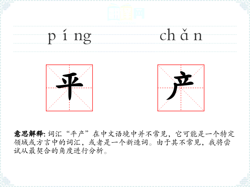 词汇“平产”在中文语境中并不常见,它可能是一个特定领域或方言中的词汇,或者是一个新造词。由于其不常见,我将尝试从最契合的角度进行分析。