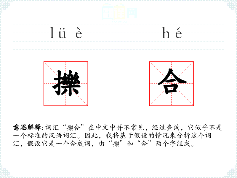 词汇“擽合”在中文中并不常见,经过查询,它似乎不是一个标准的汉语词汇。因此,我将基于假设的情况来分析这个词汇,假设它是一个合成词,由“擽”和“合”两个字组成。