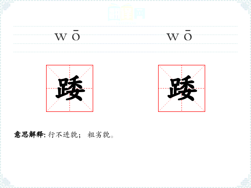 行不进貌; 粗劣貌。