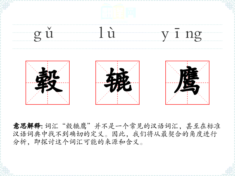由于“毂辘鹰”不是一个标准词汇,我们无法给出确切的字面意思和基本含义。但从字面上看,“毂辘”可能与车轮或旋转有关,而“鹰”则指猛禽鹰。