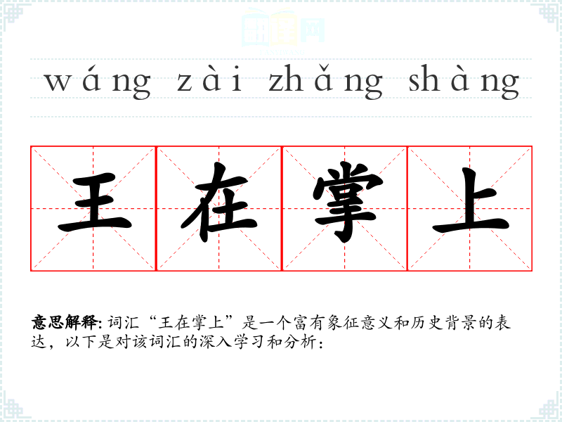 词汇“王在掌上”是一个富有象征意义和历史背景的表达,以下是对该词汇的深入学*和分析: