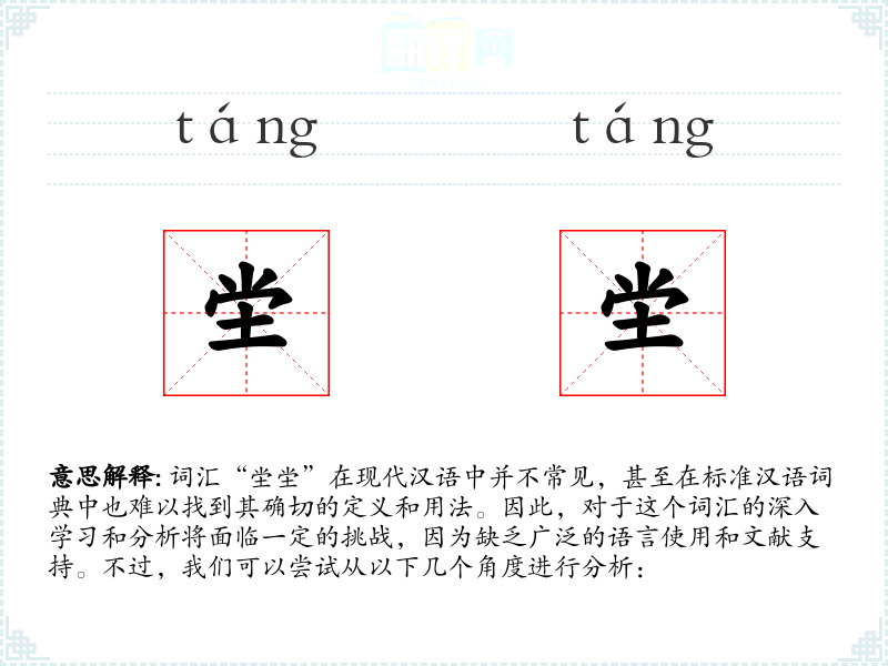由于“坣坣”不是一个标准的汉语词汇,我们无法提供一个确切的基本定义。它可能是一个方言词汇、古文中的用词,或者是某个特定社群中的术语。