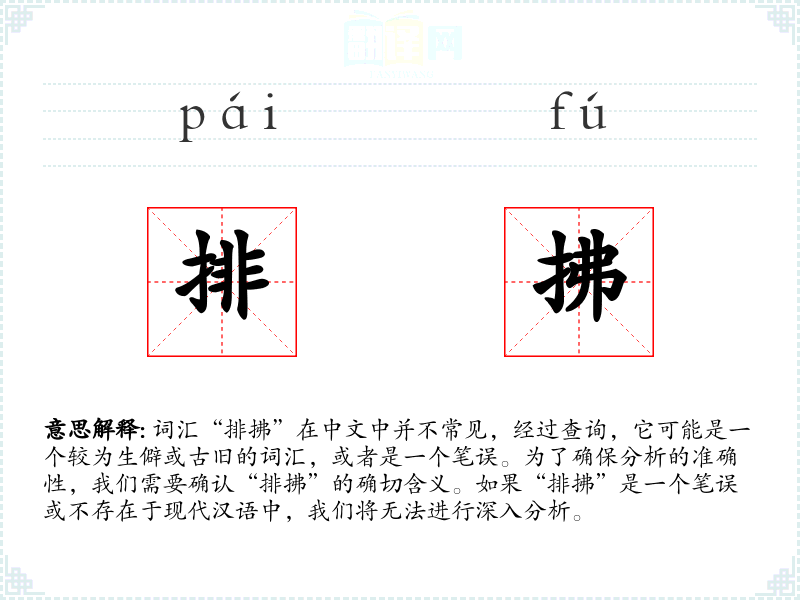 请注意,以上分析是基于假设“排拂”是一个存在的词汇。如果“排拂”确实不存在或是一个笔误,那么上述分析将不适用。