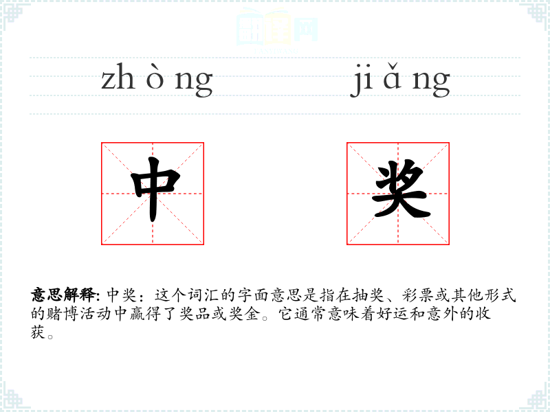 - 专业领域:在彩票和赌博行业,“中奖”是一个核心术语,用于描述赢得奖金的行为。