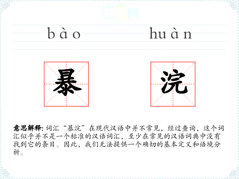 词汇“暴浣”在现代汉语中并不常见,经过查询,这个词汇似乎并不是一个标准的汉语词汇,至少在常见的汉语词典中没有找到它的条目。因此,我们无法提供一个确切的基本定义和语境分析。
