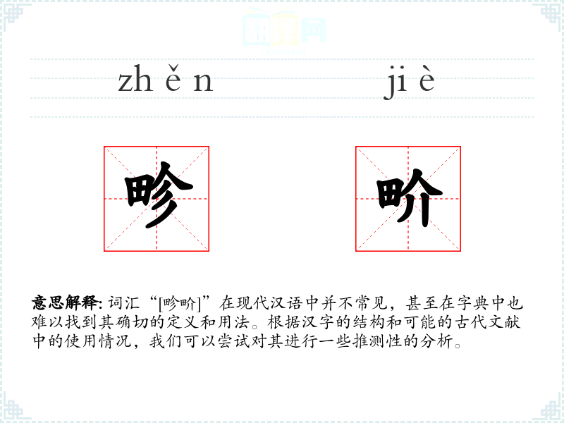 词汇“[畛畍]”在现代汉语中并不常见,甚至在字典中也难以找到其确切的定义和用法。根据汉字的结构和可能的古代文献中的使用情况,我们可以尝试对其进行一些推测性的分析。