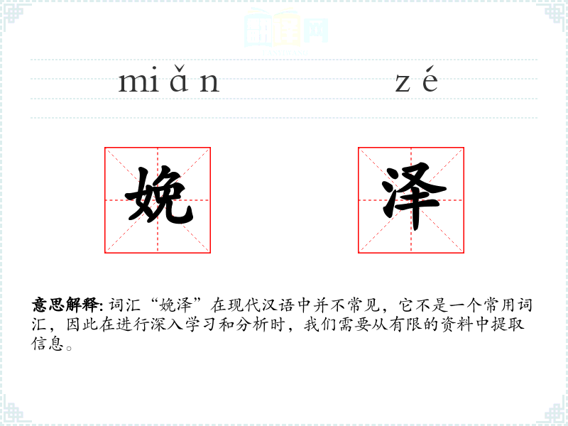 词汇“娩泽”在现代汉语中并不常见,它不是一个常用词汇,因此在进行深入学*和分析时,我们需要从有限的资料中提取信息。
