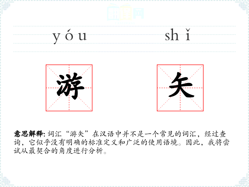 对于“游矢”这个词汇,由于其不是标准词汇,理解和应用都较为有限。在语言学习和表达中,它可能更多地被用作创意表达或特定语境下的象征意义。