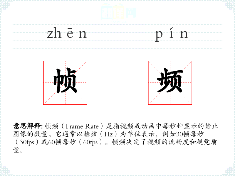 "帧频"的意思解释、帧频是什么意思由翻译网汉语词典查词提供。