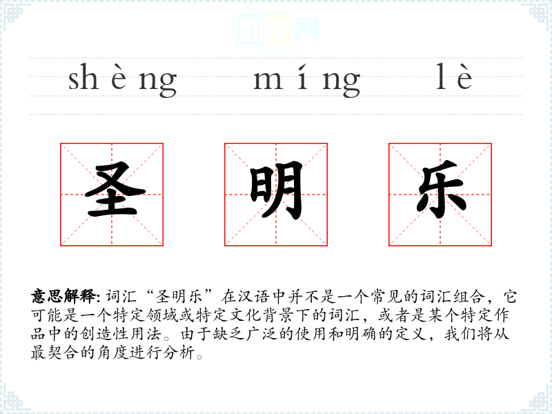 由于“圣明乐”不是一个常见词汇,个人应用可能仅限于特定的文学创作或个人哲学思考中。